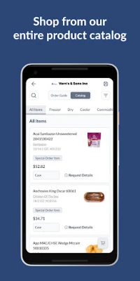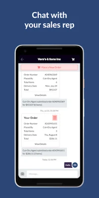 Simplify your ordering process with a personalized order guide. Explore our extensive product catalog with item photos and detailed attributes like nutritional info. Effortlessly access your order history and reorder past favorites. Conveniently view and pay invoices using Credit Card, Debit Card, or Bank Transfer. Stay connected with your sales rep and the Vern's Food Service team through in-app chat. Collaborate with team members to streamline and enhance your ordering experience.